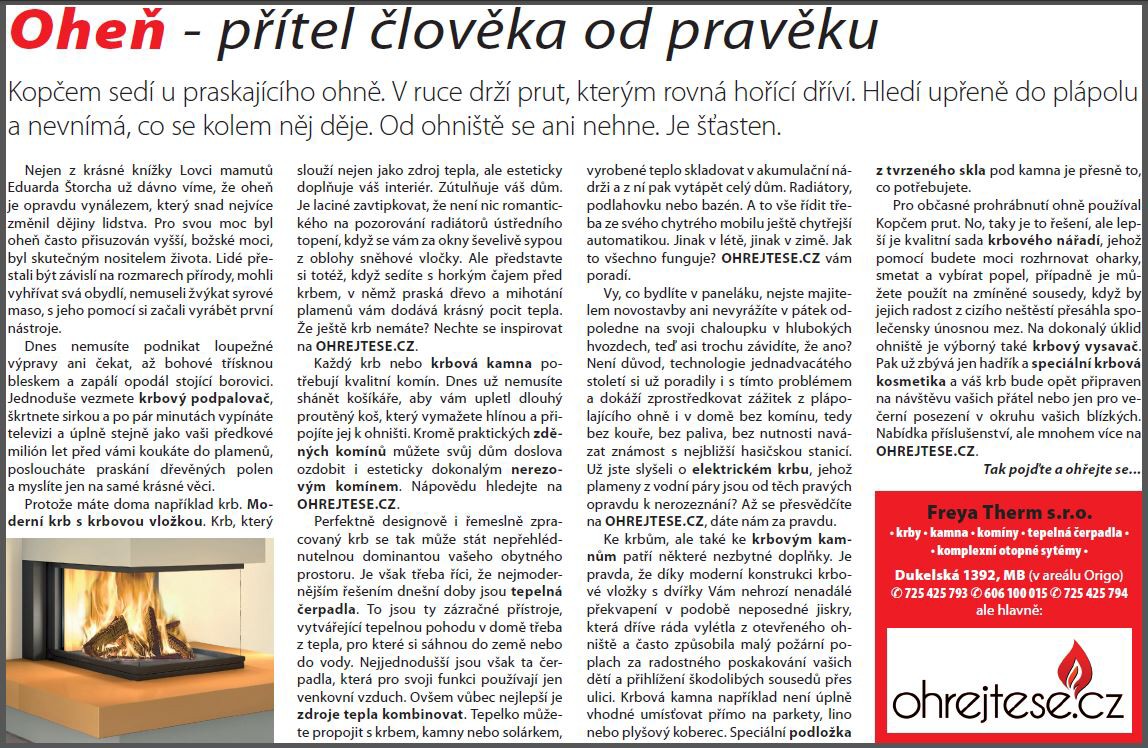 25.9.2013 - "Oheň, přítel člověka od pravěku" - článek v příloze MB deníku "Topná sezóna"