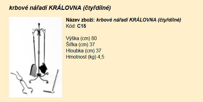 Všechny ceny krbového nářadí jsou uvedeny v koncových cenách, tedy včetně DPH.