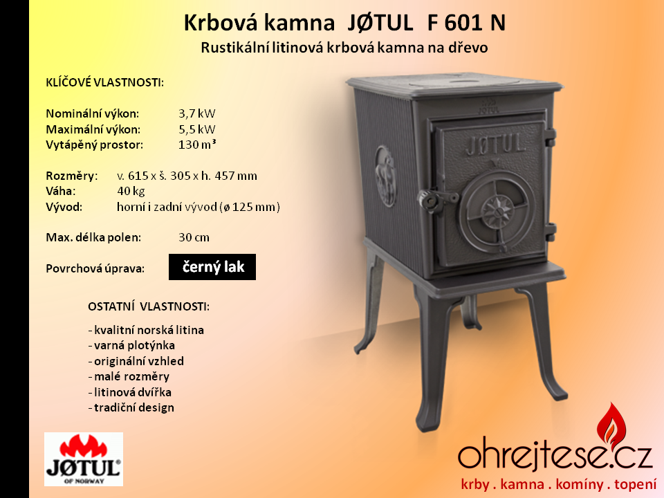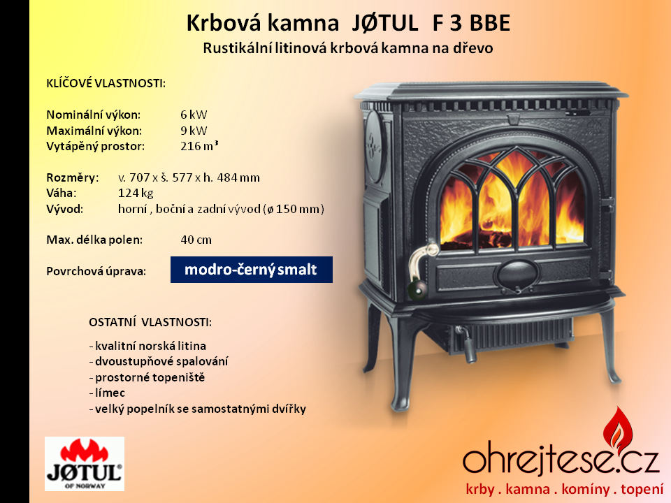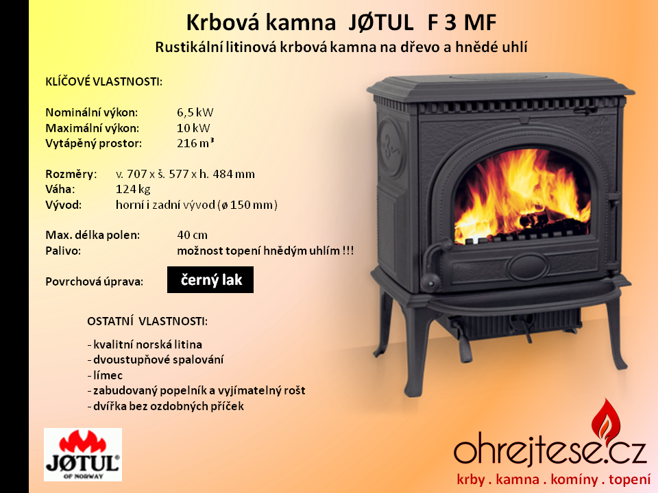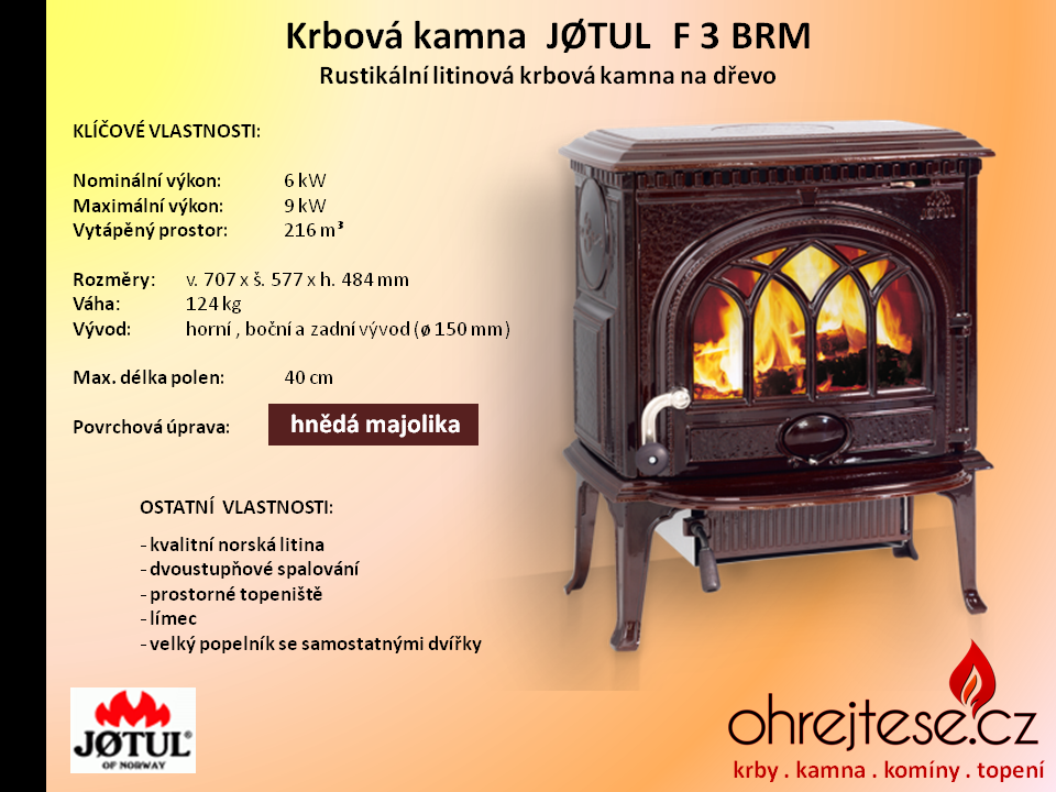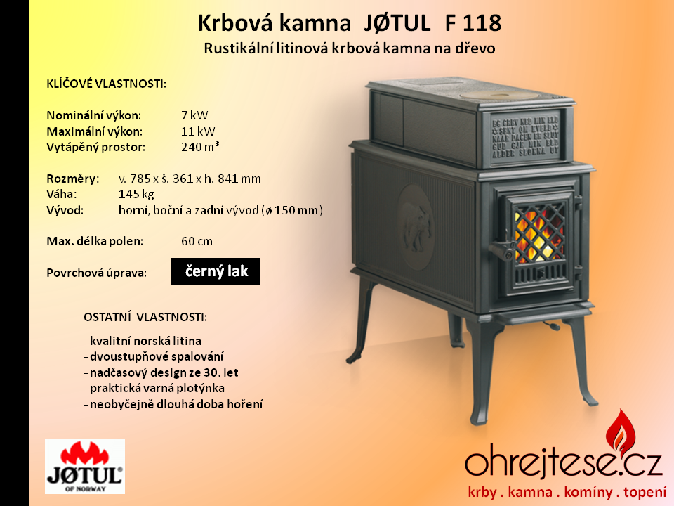 Rustikální kamna JØTUL Pokud chcete, aby na Vás z Vašich krbových kamen dýchla opravdová historie a tradice, pak se nechte oslovit rustikálním vzhledem kamen norské značky Jøtul. V základním provedení jsou v černém laku, variantně jsou k dispozici smaltovaná provedení v různých barevných odstínech.