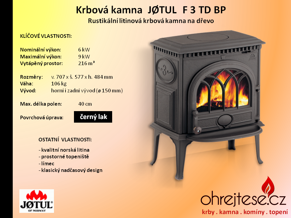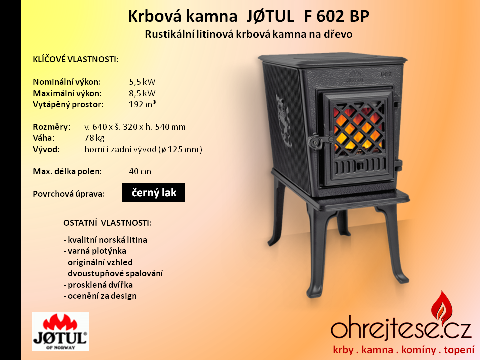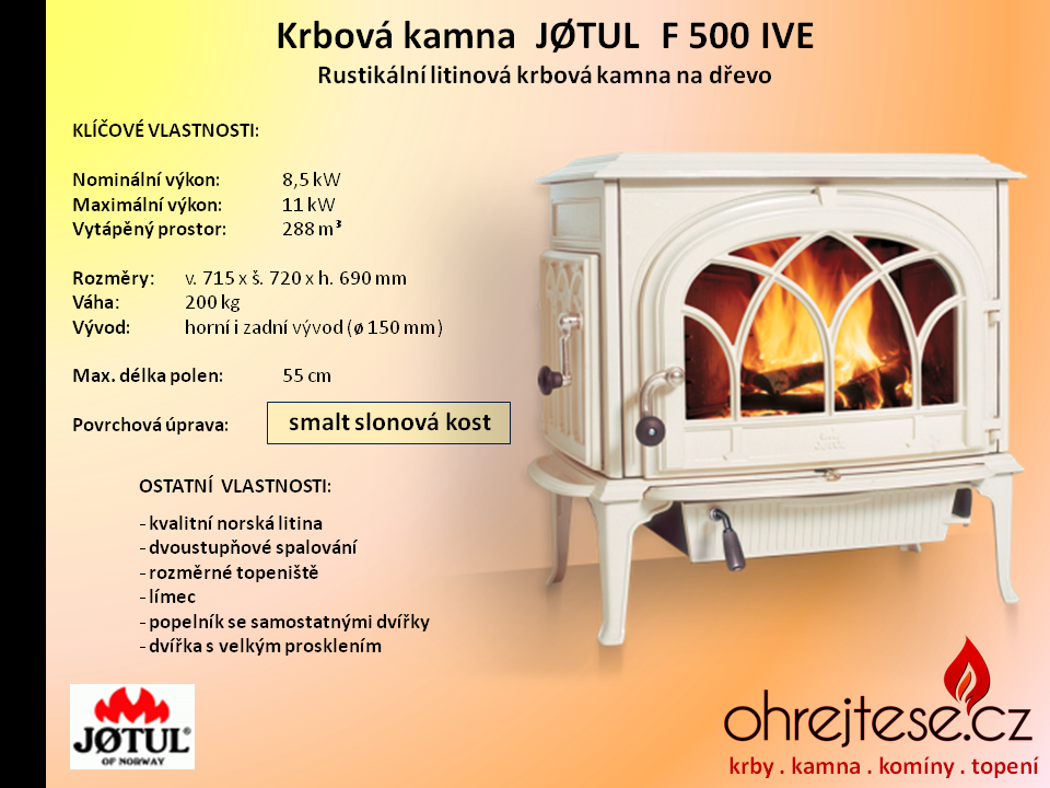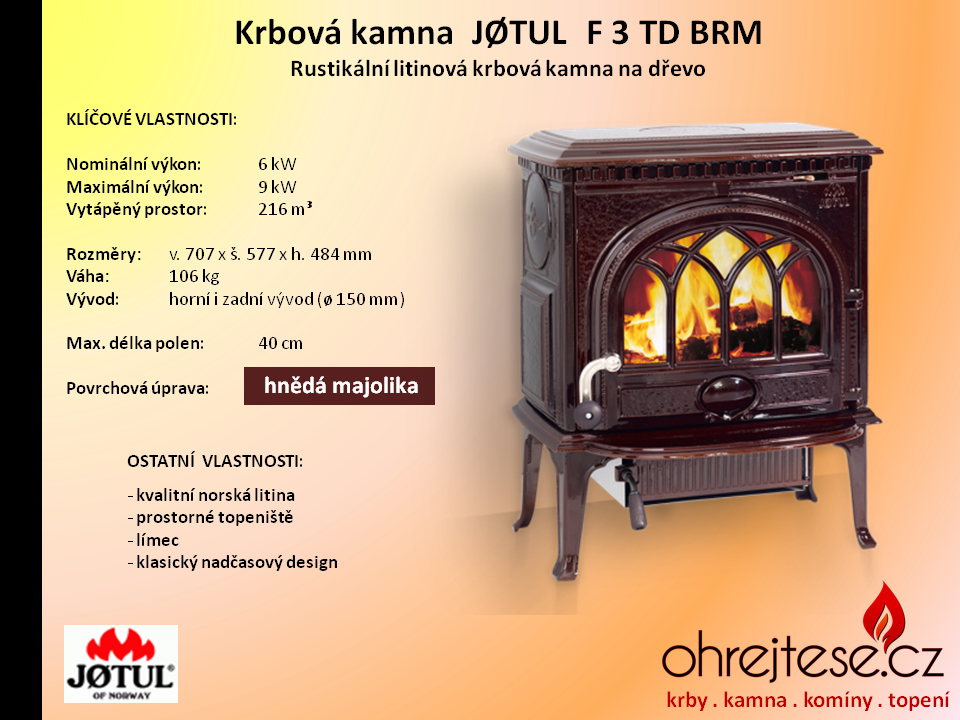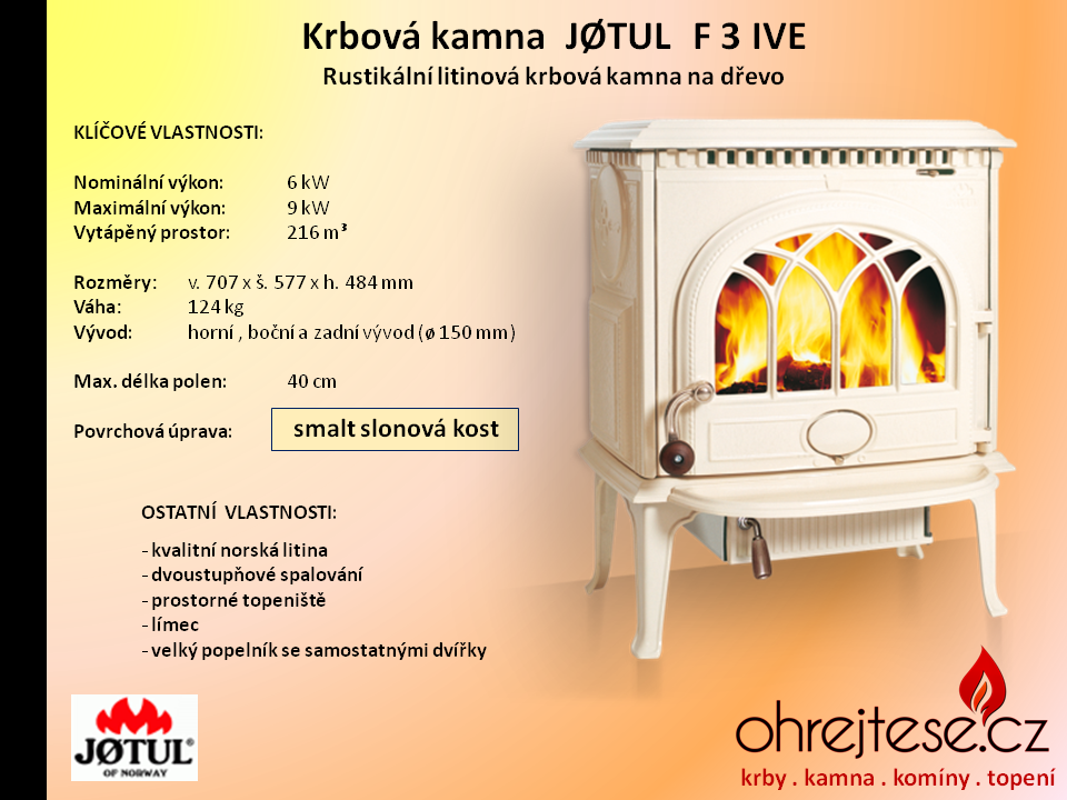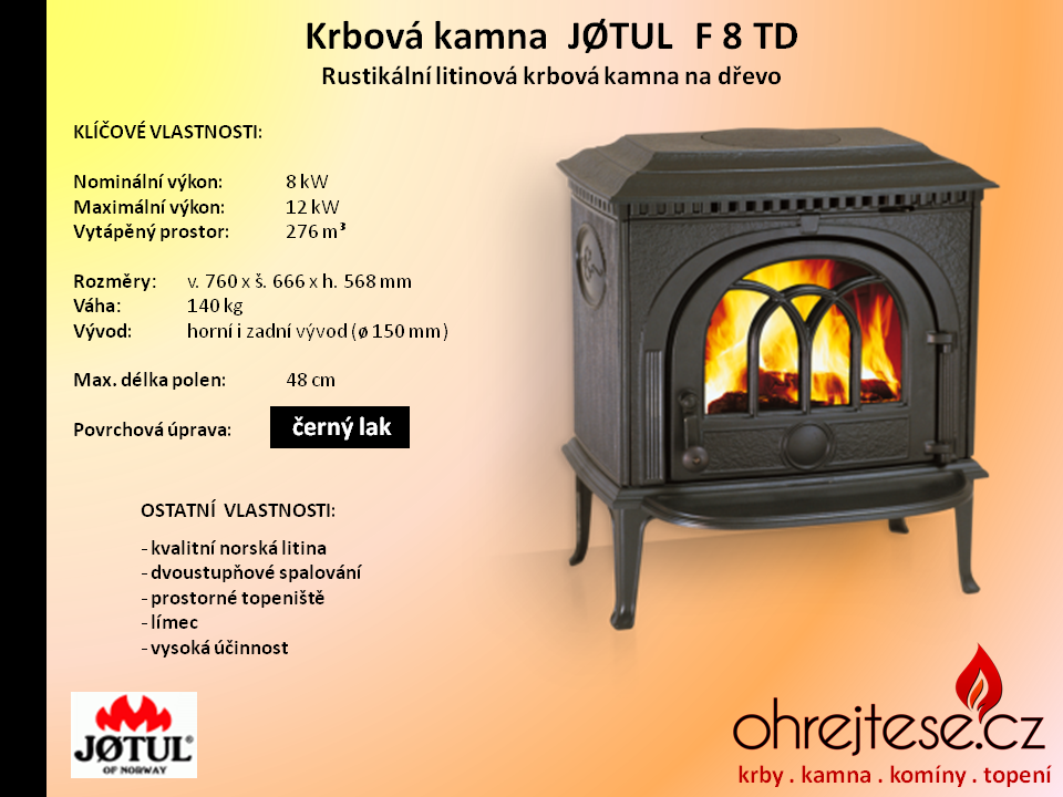 Rustikální kamna JØTUL Pokud chcete, aby na Vás z Vašich krbových kamen dýchla opravdová historie a tradice, pak se nechte oslovit rustikálním vzhledem kamen norské značky Jøtul. V základním provedení jsou v černém laku, variantně jsou k dispozici smaltovaná provedení v různých barevných odstínech.