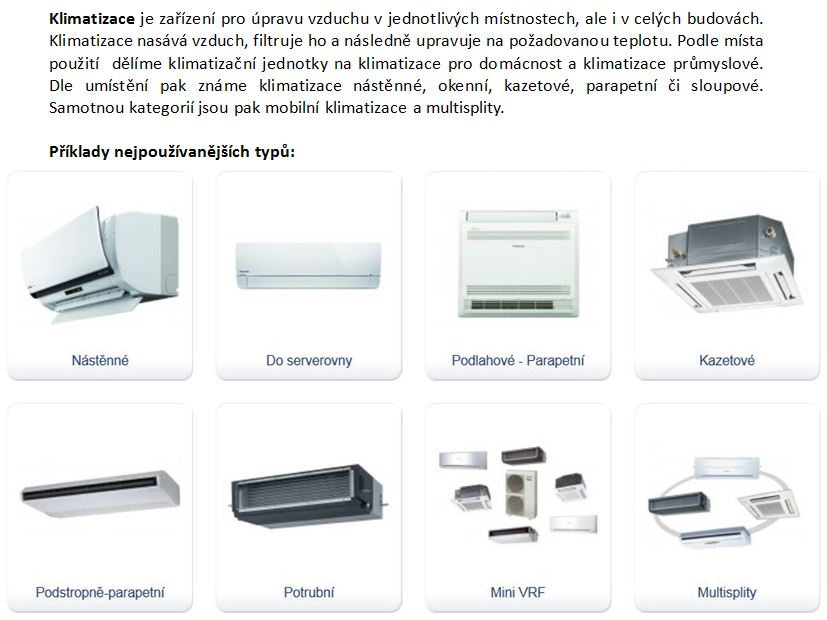 Do úplného výčtu patří ještě jeden typ tepelného čerpadla a to ten, který odnímá teplo venkovního vzduchu a upravuje teplotu vzduchu v místnosti - tedy typ "vzduch/vzduch". Tento princip je použit v různých typech klimatizačních jednotek, jimiž můžete vybavit svůj interiér doma nebo v kanceláři a zajistit si tak tepelnou pohodu nezávisle na ročním období a počasí za oknem.