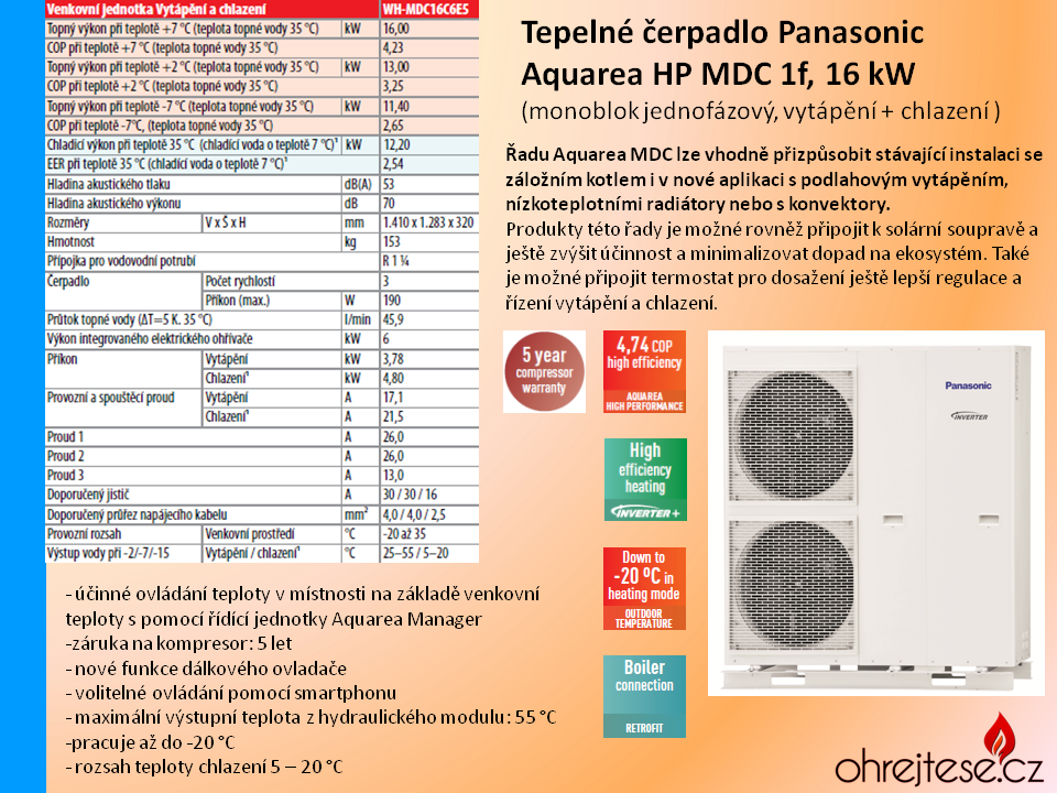 a) Aquarea HP (High Performance) - základní řada, určená pro standardní běžná obydlí i pro nízkoenergetické domy,